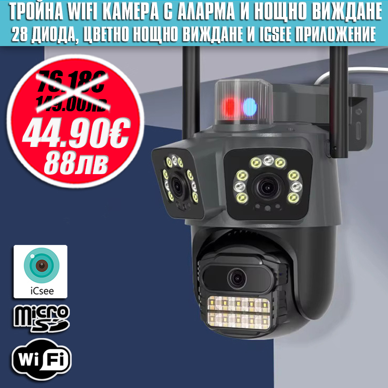 Благодарение на PTZ управлението, можете да движите обектива дистанционно и да покривате максимално широк периметър. Усъвършенстваното нощно виждане с 28 светодиода осигурява пълна яснота дори в пълна тъмнина, а ICSee приложението предоставя най-модерната функционалност на пазара – включително наблюдение в реално време и персонализирани настройки.