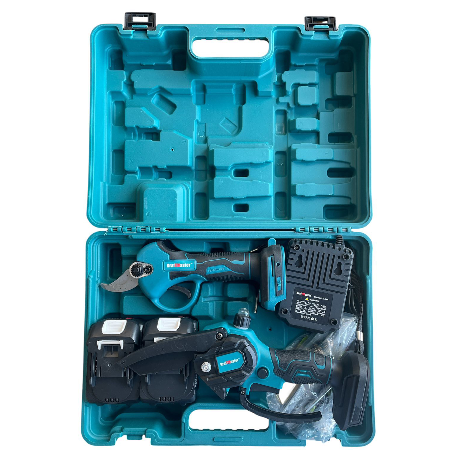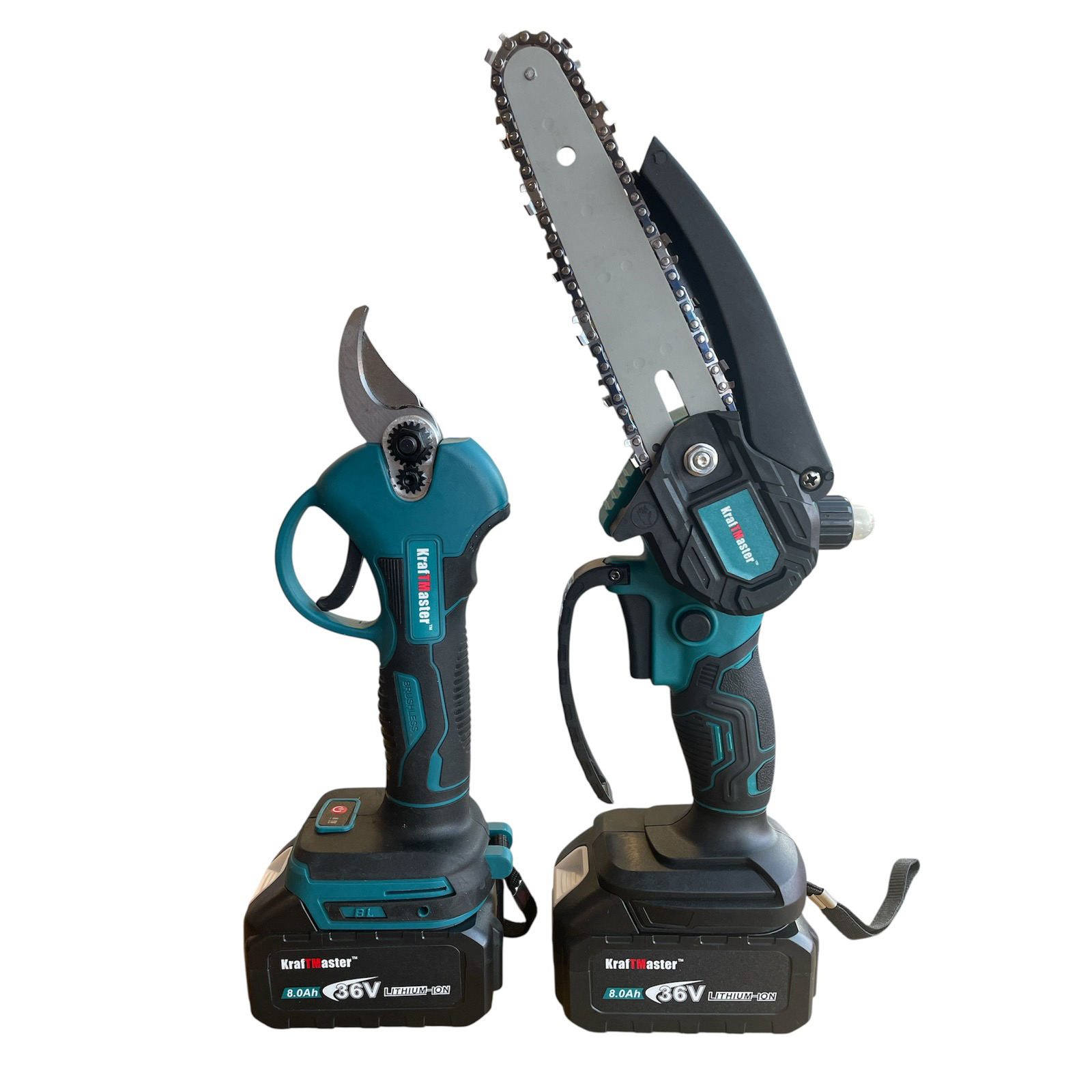 Акумулаторен Комплект KraftMaster: Професионална Лозарска Ножица и Мини Трион 36V